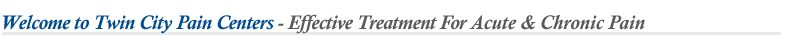 The Twin City Pain Centers staff is dedicated to treating patients with acute and chronic pain from trauma and all types of accidents. Our goal is to provide our patients with the highest quality healthcare services in the fields of Physical Medicine, Rehabilitation and Pain Management. Our commitment to our patients has led us to the development of pain management centers which use state of the art equipment and the newest and most advanced forms of treatment for acute and chronic pain conditions. To provide the highest standards of professional healthcare in the industry by using the safest and most technologically advanced means available in a friendly and caring environment. |